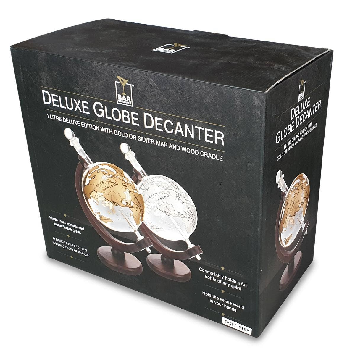 Drink all the Whisky in the World... The world in question is this strikingly handsome globe-shaped decanter. It's handblown from borosilicate glass and includes a blown-glass ship in the centre. Easily removed for pouring and passing around (it's wonderfully satisfying to hold), the decanter has a glass ball stopper with an airtight seal.
