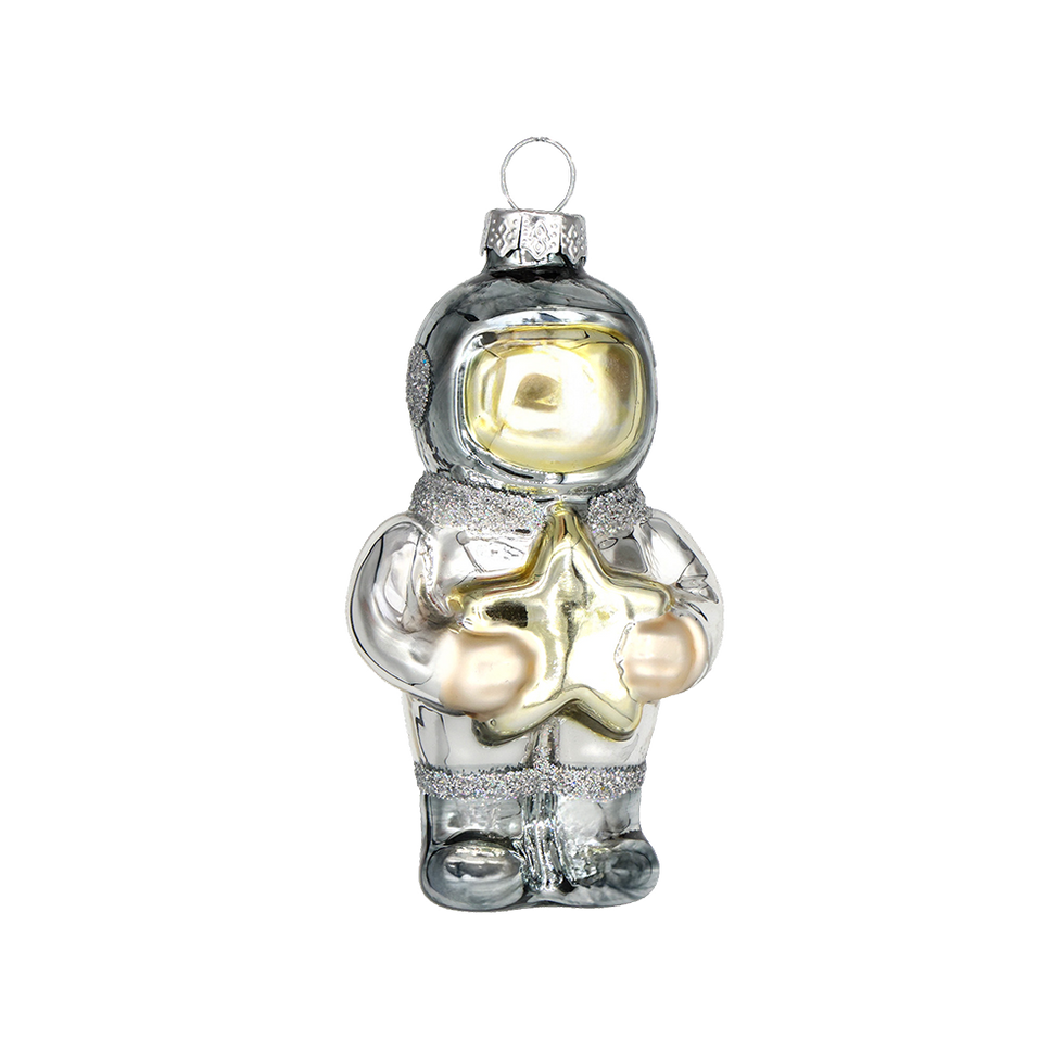 Glass Vintage Silver Astronaut with Star Ornament
