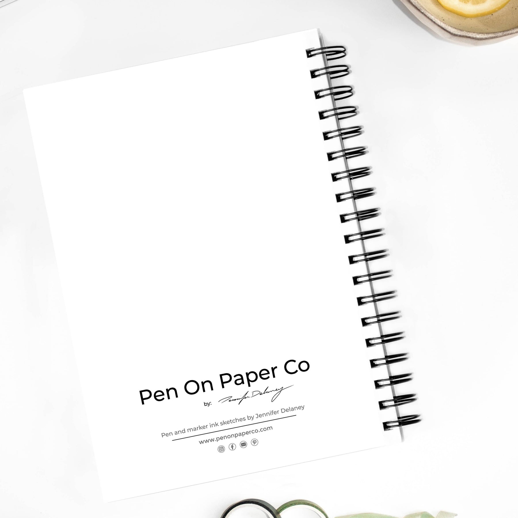 Featuring artwork on the cover and a matching watermark on each inner page. This spiral-bound notebook combines durability and style with its hard covers and double-coil binding. The sturdy covers provide protection for your notes and writings, ensuring that they remain safe from wear and tear. The spiral binding allows you to flip through pages seamlessly, making it easy to jot down ideas and take notes without any hassle.