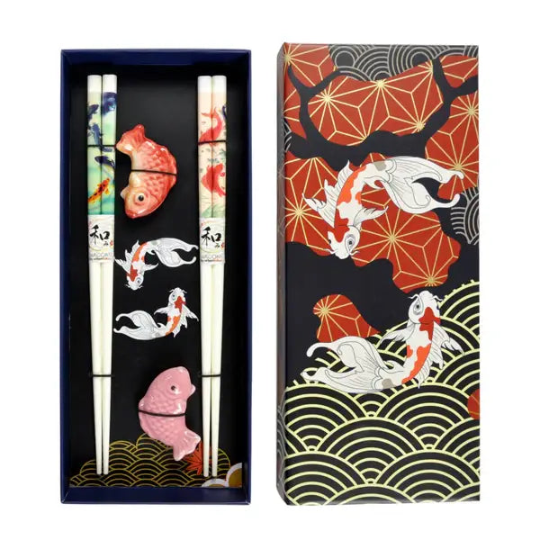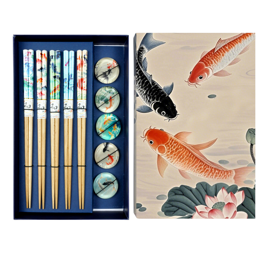Koi Fish 5 Pair Chopsticks and Chopsticks Rests Gift Set