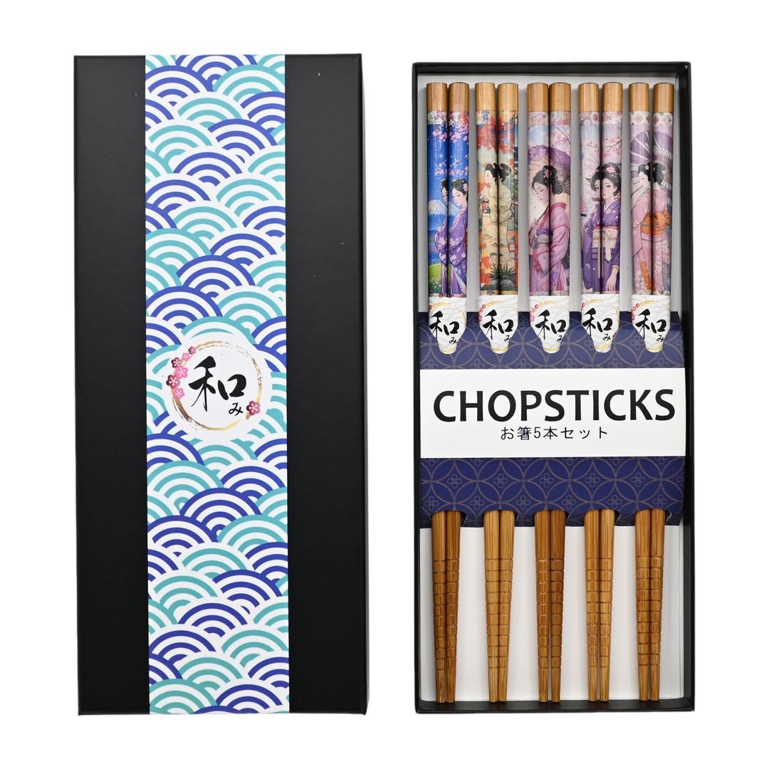 5 Piece Chopsticks Set Geisha with Gift Box