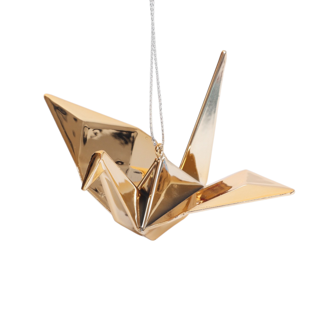 Gold Origami Crane Hanging Ornament