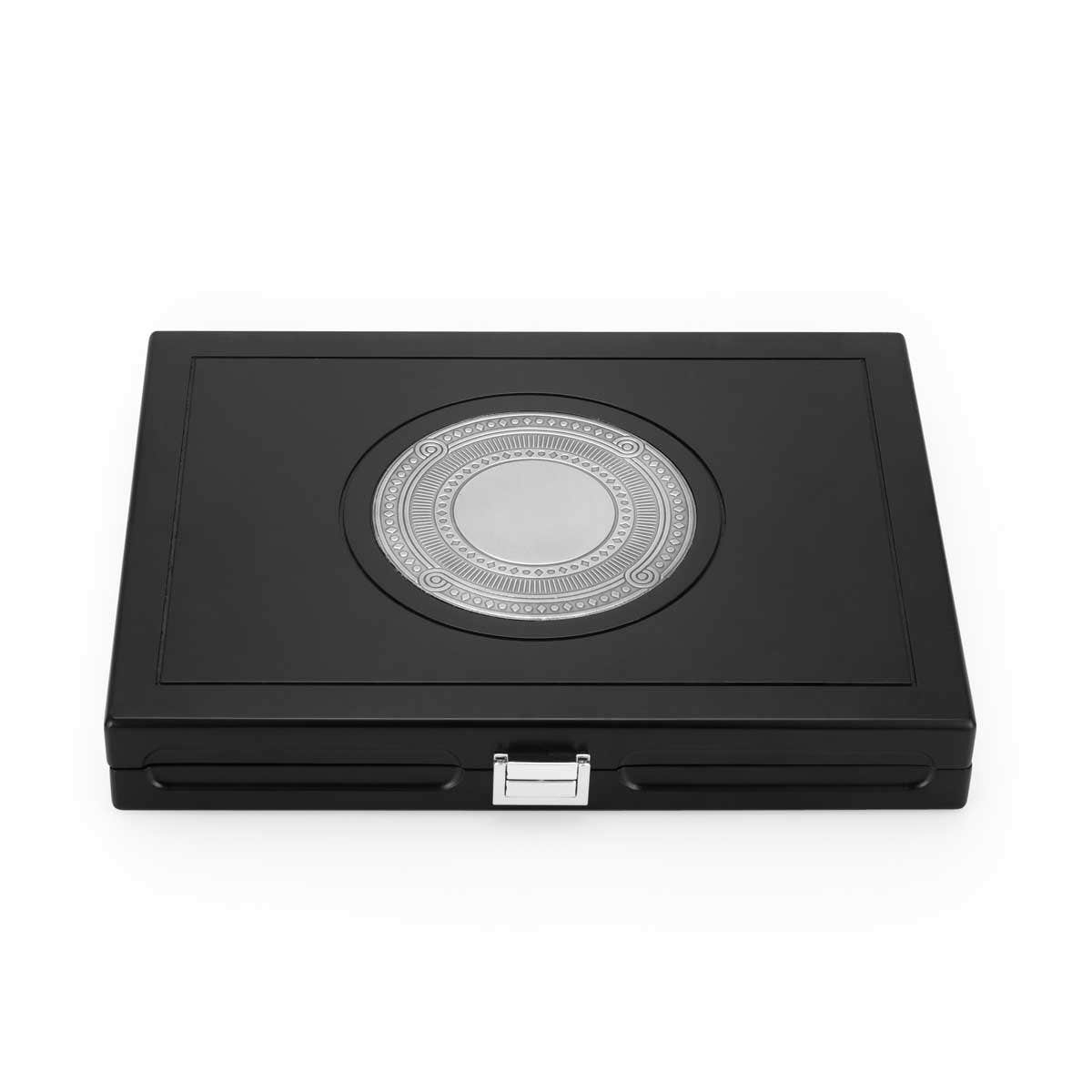 The playing surface features precise pewter embellishments that contrast with the natural wood grain. Laminated rubberwood counters with pewter accents and matching pewter shakers complete the set, ensuring a cohesive look and feel. Designed for both play and display, this set adds a touch of sophistication to any game collection.